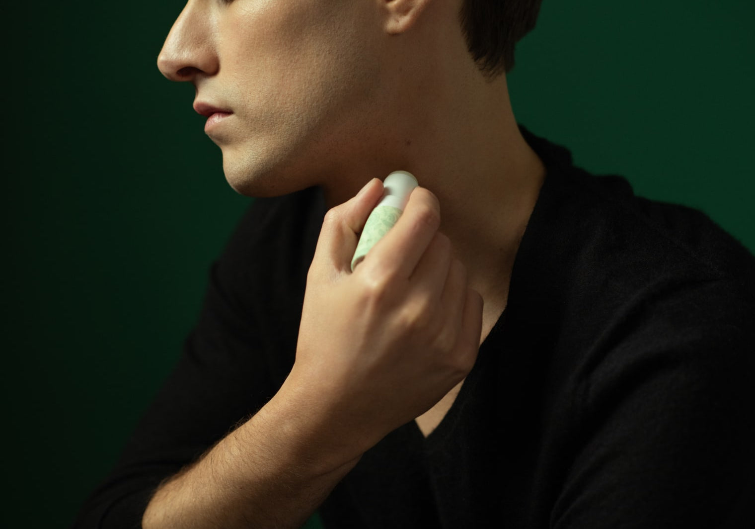 Glide this nourishing fragrance where your skin dips and flattens, focusing on the acupuncture points on each side; be bold and mischievous on either side of your nose, and enjoy the effective and liberating effect on your temples, near your hairline.