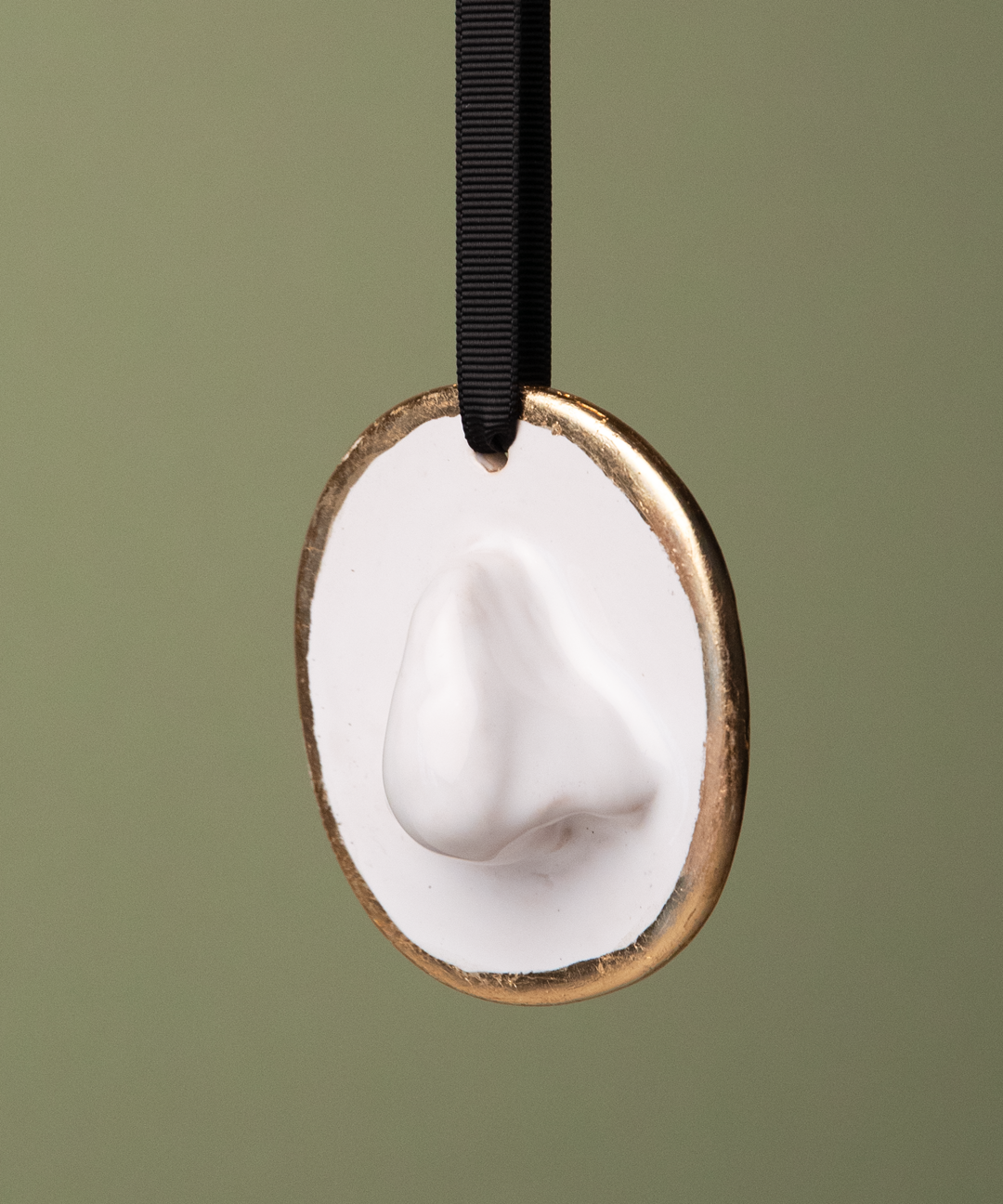 Ces précieux Maîtres-Nez sont nés de notre complicité intellectuelle, émotionnelle avec Nadège Delaruelle Artiste, céramiste-doreuse. Chaque Maitre-Nez porte un petit nom de bonne augure, noms inspirants, protecteurs de nous et nos Aimés: le Mage et le Berger.